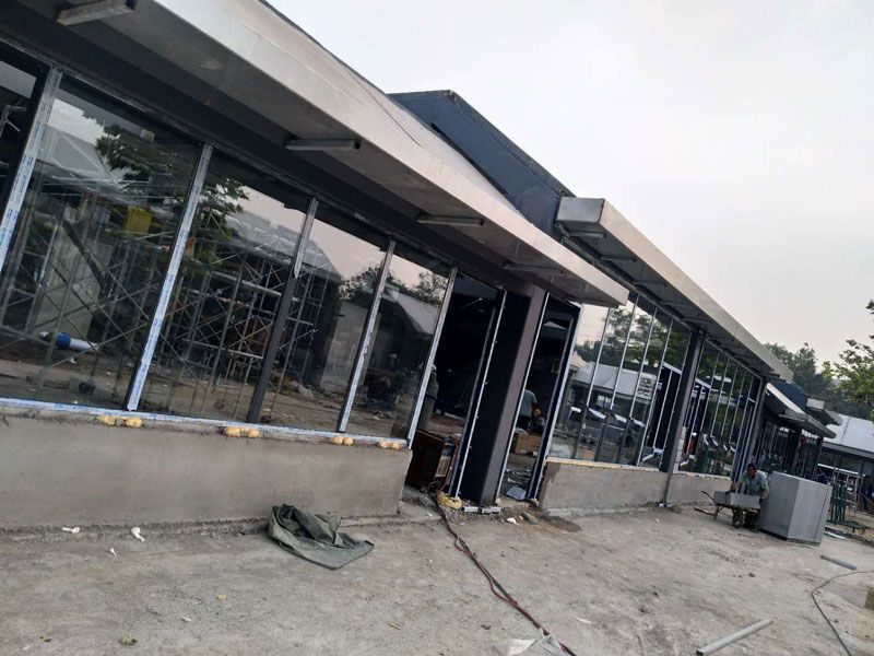 為迎接七月一日森林公園美食街開業,我公司承接的日照市土地發展集團有限公司森林公園美食街創意玻璃房和門窗項目,要求必須在十五天內完成。公司積極響應、迅速部署、調度生產,全天24小時,加班加點確保本項目按時交付業主運營。