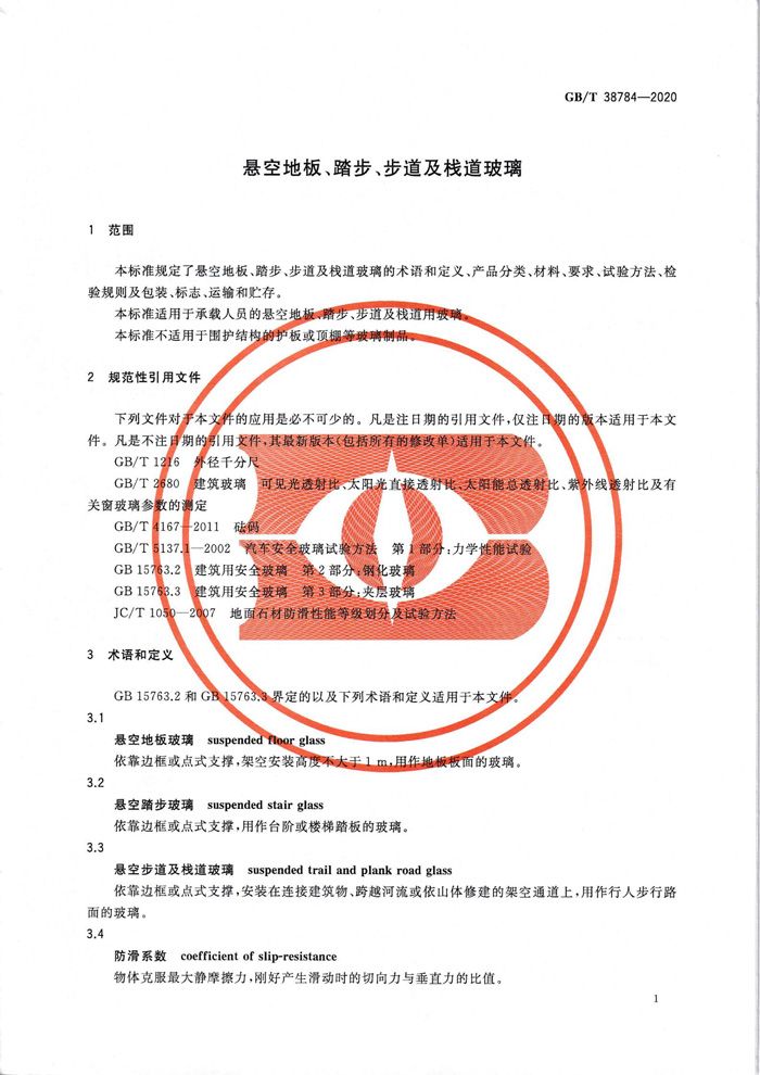 本標準適用于承載人員 的懸空地板、踏步、步道及棧道玻璃。