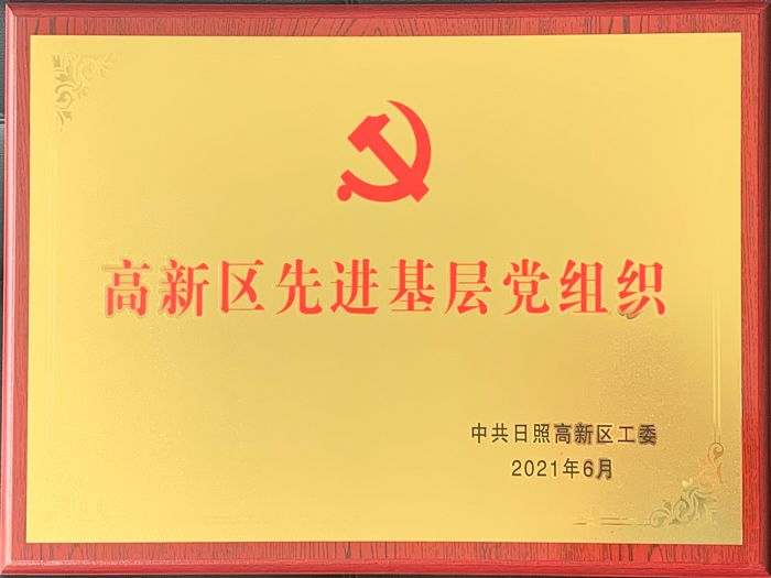 慶祝中國共產黨建黨100周年之際,日照高新區工委隆重召開“兩優一先”表彰大會,華業玻璃黨支部被表彰為“高新區先進基層黨組織”。