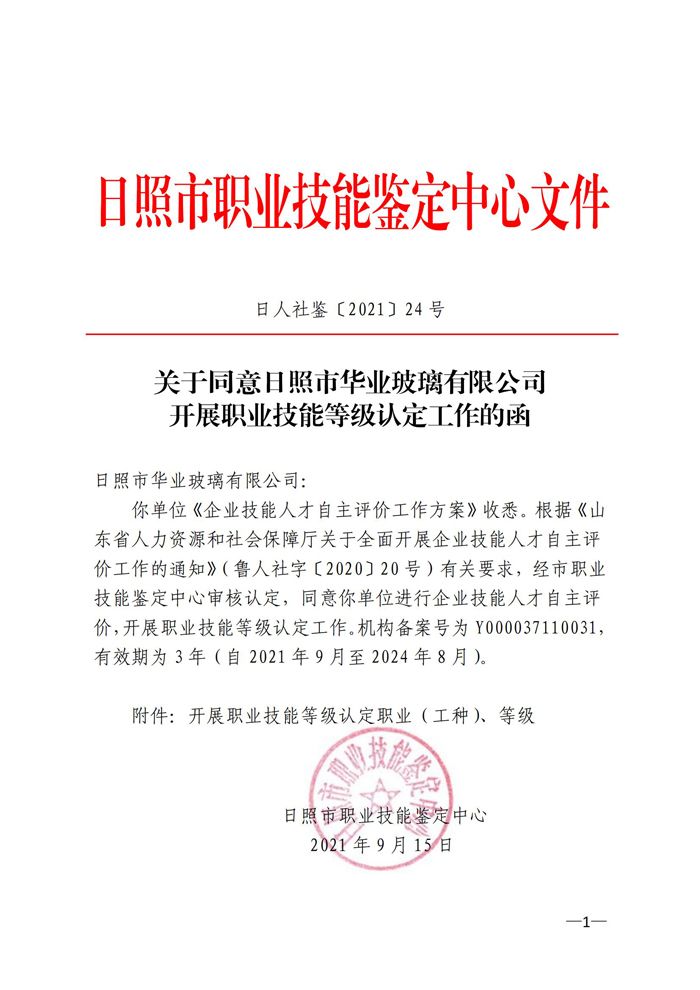 2021年9月15日,經(jīng)日照市職業(yè)技能鑒定中心審核認(rèn)定,同意我公司進行企業(yè)技能人才自主評價,開展職業(yè)技能等級認(rèn)定工作。